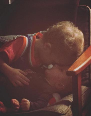 Αρκετά συχνά, άλλωσετ ποστάρει στα social media στιγμές από την καθημερινότητά της στο σπίτι αλλά και τη δουλειά. Ο μεγάλος της γιος, Νίκος, ποζάρει πάνω από το νεογέννητο αδερφάκι του και τα likes-όπως ήταν αναμενόμενο-έπεσαν βροχή.