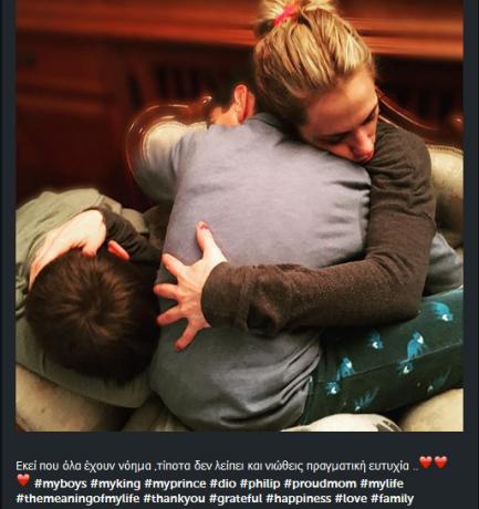 Πρόσφατα πόσταρε στο λογαριασμό της στο instagram μια τρυφερή φωτογραφία, όπου οι τρεις τους γίνονται ένα σε μια σφιχτή αγκαλιά.