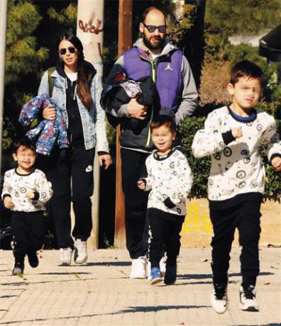 Και βέβαια τα βλέμματα όλων «έκλεψαν» τα τρία τους αγόρια, τα οποία φορούσαν τα ίδια μπλουζάκια και ακολουθούσαν ο ένας τον άλλον.