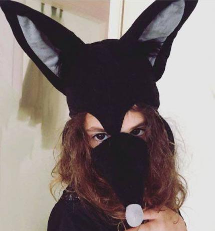 Η μικρή φοράει αυτιά νυχτερίδας και μουσούδα αρουραίου και βέβαια ποζάρει όλο νάζι και χάρη στο φωτογραφικό φακό, όπως η μαμα της.