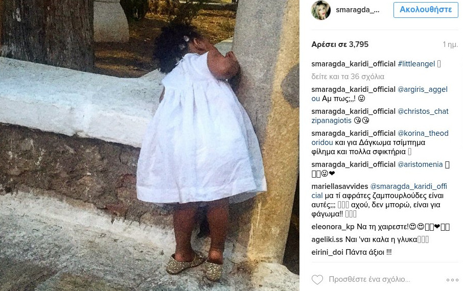 Η Σμαράγδα Καρύδη ανέβασε και μία φωτογραφία της μικρής στην προσωπική της σελίδα στο Instagram, χωρίς να φαίνεται το πρόσωπο του μικρού κοριτσιού. «Ένας μικρός άγγελος», σχολίασε η ίδια.