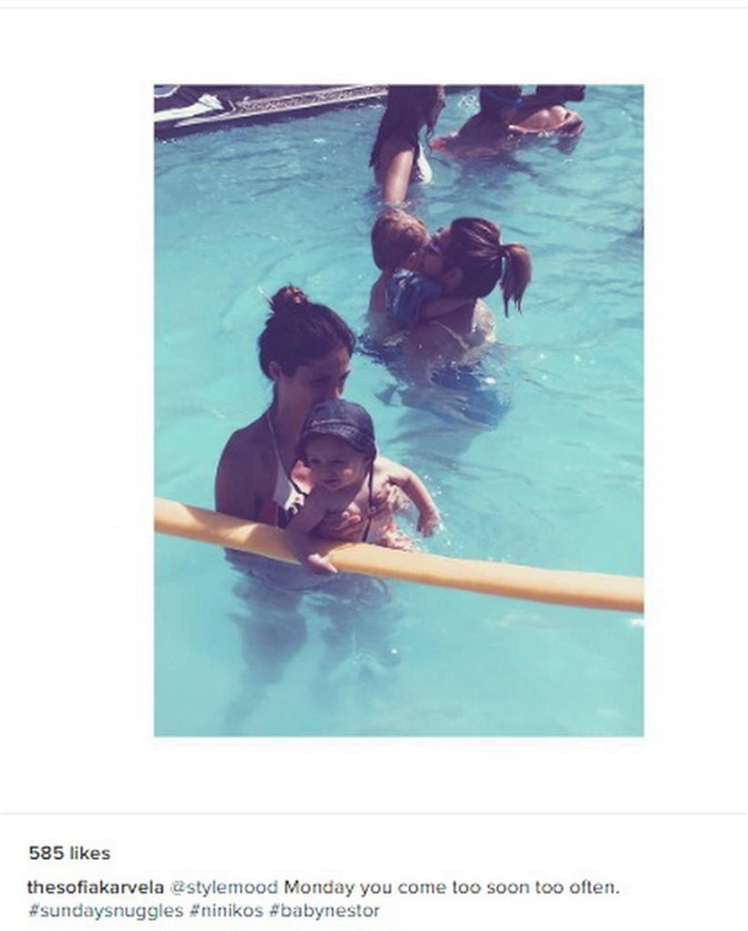 Σοφία Καρβέλα: Στην πισίνα με το μικρό Νέστορα