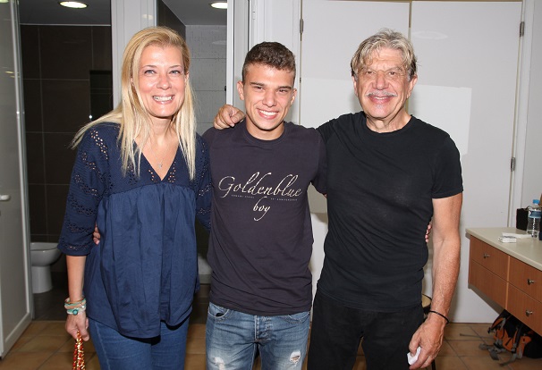 Εκεί παρευρέθηκε με φίλους του, ενώ πόζαρε και μαζί με τους γονείς του στα καμαρίνια μετά το τέλος της παράστασης.