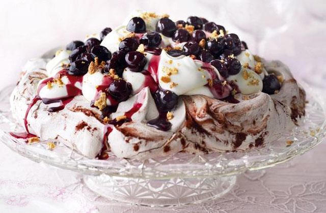 Πεντανόστιμη πάβλοβα με βύσσινα και σοκολάτα