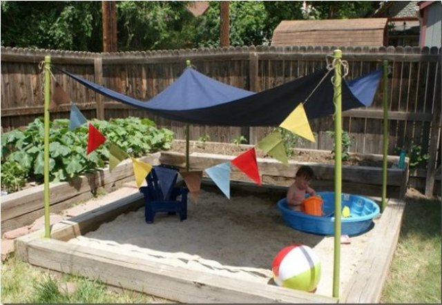 Φτιάξε ένα μέρος όπου θα βάλεις μέσα άμμο για να κάνετε κατασκευές και, αν έχεις χώρο, πρόσθεσε και μια μικρή παιδική πισίνα για να περάσει ευχάριστες ώρες όλη η οικογένεια.