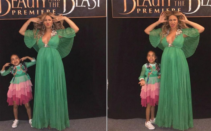 Πρόσφατα, η pop star ανέβασε φωτογραφίες της στην προσωπική της ιστοσελίδα beyonce.com που τη δείχνουν σε εξαιρετικά καλή διάθεση στην πρεμιέρα της ταινίας «Beauty and the Beast», με την κόρη της Blue Ivy.