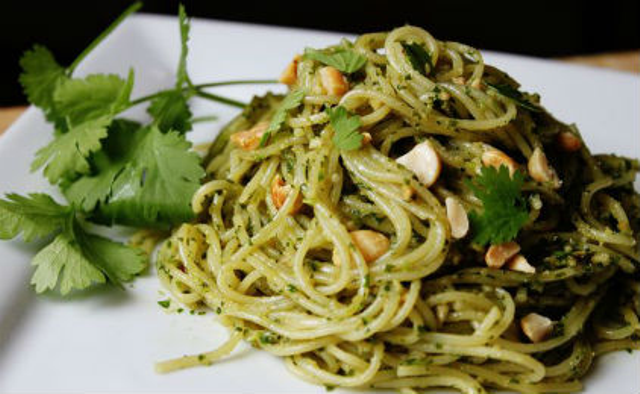 Σπαγγέτι με pesto, λαχανικά και άρωμα λεμονιού