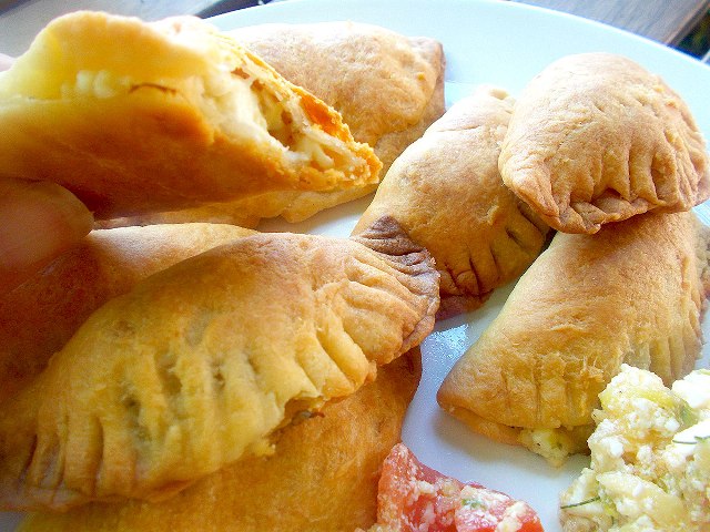Κλείνουμε τα πιτάκια καλά, τα πατάμε με πιρούνι γύρω γύρω να θωρακίσουμε την γέμιση και τα αραδιάζουμε σε ταψί που απλώσαμε λαδόκολλα. Ψήνουμε σε προθερμασμένο φούρνο στους 180 βαθμούς για 15-20 λεπτά περίπου (ανάλογα τον φούρνο μας). Τα βγάζουμε από τον φούρνο κι είναι έτοιμα να τα απολαύσουμε ζεστά και κρύα.