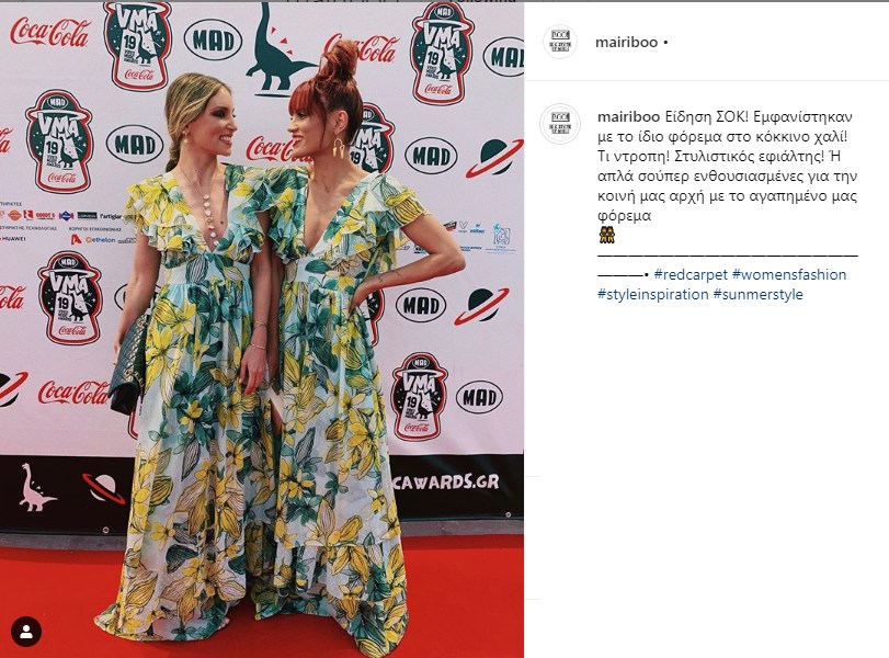Δύο από τα πιο ηχηρά ονόματα της ελληνικής showbiz, η Μαίρη Συνατσάκη και η Αθηνά Οικονομάκου, το βράδυ της εμφανίστηκαν σε μουσικό event με το ίδιο φόρεμα. Φυσικά κάτι τέτοιο δεν έγινε τυχαία. Οι δυο τους επέλεξαν με ένα φλοράλ φόρεμα όπου κυριαρχούσαν το κίτρινο και το πράσινο χρώμα κάνοντας έτσι το δικό τους fashion statement, μα κυρίως promotion του fashion label τους. Μάλιστα η Μαίρη Συνατσάκη έκανε και μία ανάρτηση στο προφίλ της, όπου έγραψε χαρακτηριστικά: «Είδηση ΣΟΚ! Εμφανίστηκαν με το ίδιο φόρεμα στο κόκκινο χαλί! Τι ντροπή! Στυλιστικός εφιάλτης! Ή απλά σούπερ ενθουσιασμένες για την κοινή μας αρχή με το αγαπημένο μας φόρεμα»..jpg)
