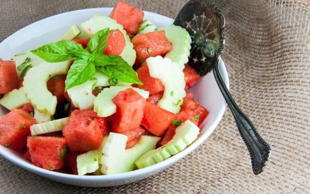Το καλοκαίρι είναι εποχή που δε μας αρέσει να τρώμε βαριά και ψάχνουμε εύκολες και γρήγορες λύσεις. Μια τέτοια λύση είναι η σαλάτα με καρπούζι και αγγούρι:Υλικά για 2-4 άτομα