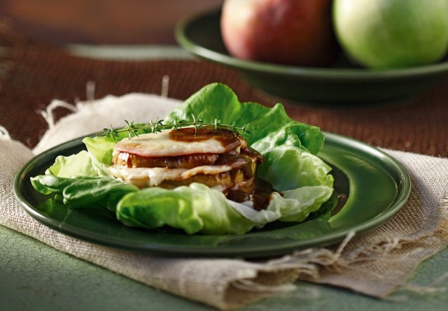 Ένα ιδιαίτερο ορεκτικό με στρώσεις από μήλα, τυρί και ζαμπόν, που ταιριάζει πολύ σε φθινοπωρινά, γιορτινά τραπέζια. Μερίδες: 4