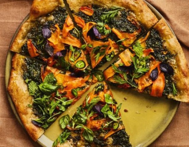 Σπιτική πίτσα με πέστο καρότου και μυρωδικά