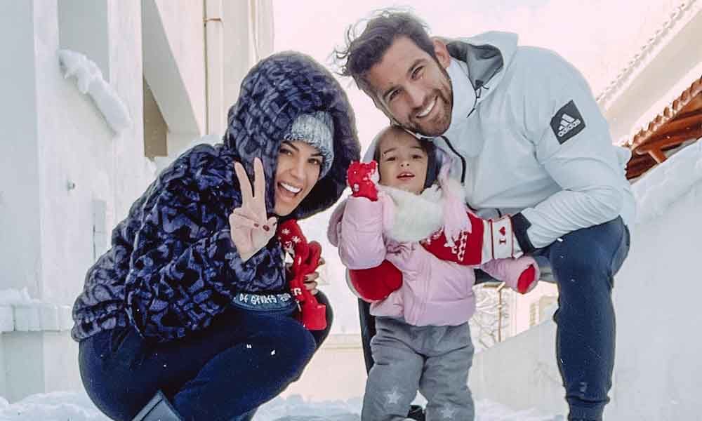 Η Ελένη Χατζίδου και ο Ετεοκλής Παύλου παίζουν με την κορούλα τους στα χιόνια…