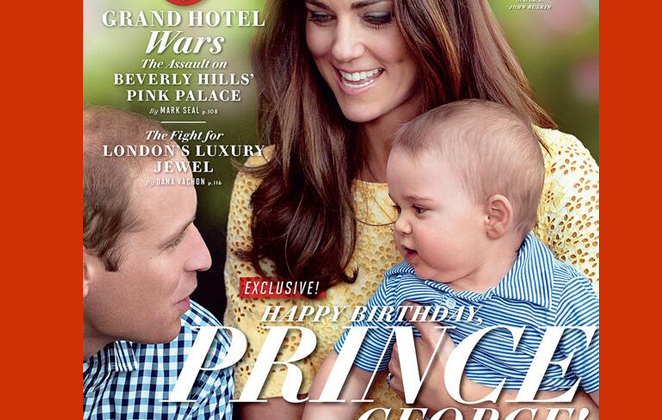 Ο πρίγκιπας George φωτογραφήθηκε για πρώτη φορά με τους γονείς του για το εξώφυλλο του περιοδικού Vanity Fair για το τεύχος Αυγούστου. Σύμφωνα με τα όσα γράφει το περιοδικό ο μικρός πρίγκιπας τους πρώτους μήνες της ζωής του δυσκόλεψε πολύ το παλάτι.