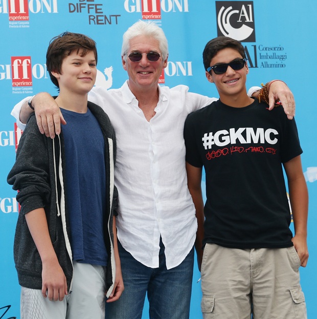 Πάντα όμως, υπάρχει η εξαίρεση στον κανόνα! Έτσι, ο γοητευτικός – όσο και αν περάσουν τα χρόνια – Richard Gere πόζαρε με τον 14χρονο γιο του Homer, καρπό του έρωτά του με την πρώην σύζυγό του Carey Lowell. ( Ο γιος του στέκεται αριστερά του – δεξιά είναι ο ανιψιός του).