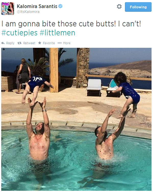 Πριν από λίγες ημέρες η Καλομοίρα ανέβασε στον προσωπικό της λογαριασμό στο instagram μια φωτογραφία που απεικονίζει τον σύζυγό της Γιώργο να απολαμβάνει τα παιχνίδια στην πισίνα με τα διδυμάκια τους.
