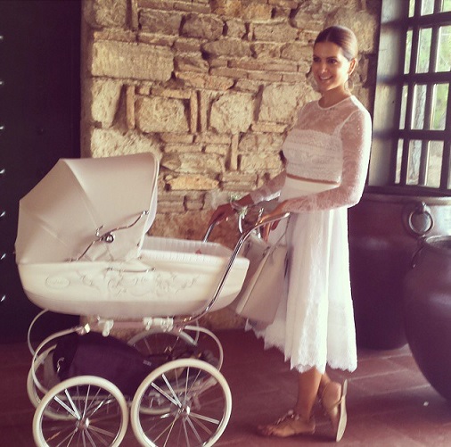 Η Σταματίνα έχοντας σε vintage καρότσι την μικρή της κόρη
