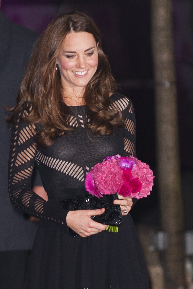 Επέλεξε να βάλει ένα μαύρο coctail dress και μαύρες ψηλοτάκουνες γόβες. Η Kate διανύει τον τρίτο μήνα της εγκυμοσύνης της και αναμένεται να γεννήσει τον Απρίλιο.