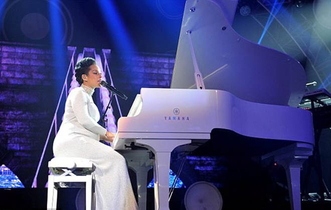 Εκτός από το ταλέντο της στο πιάνο, η Αlicia Keys μας έδειξε και τη φουσκωμένη της κοιλίτσα, η οποία φαινόταν αρκετά με το φόρεμα που φορούσε.