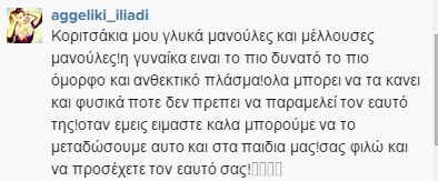 Tα σχόλια, όμως, που δέχτηκε δεν ήταν όλα τόσο κολακευτικά. Δύο από τις followers της «τα έβαλαν» μαζί της και, μάλιστα, πολύ αυστηρά.