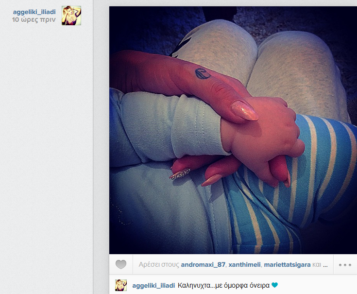 Τις προάλλες η Αγγελική Ηλιάδη ανέβασε στον λογαριασμό της μία φωτογραφία όπου έχει στην αγκαλιά της το μικρό Βασίλη, κρατώντας του τρυφερά το χέρι κι έγραψε: