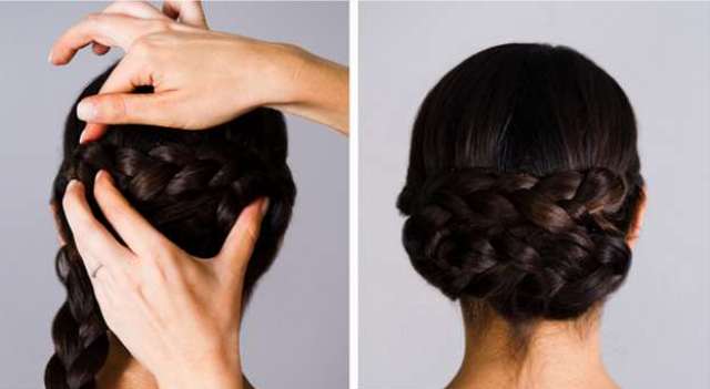 Και τώρα το τελικό στάδιο. Δίπλωσε τη δεξιά πλεξούδα που άφησες πίσω προς τα πάνω και γύρισέ τηπρος τα αριστερά, ώστε να καλύψεις το επάνω μέρος από τις πλεξούδες που έβαλες προηγουμένως και βάλε μερικά τσιμπιδάκια για να τη στερεώσεις. Κάνε την ίδια διαδικασία και για τη δεξιά πλεξούδα, βάζοντάς τη αυτή την φορά ακριβώς κάτω από την προηγούμενη. Τόσο απλά και εύκολα θα είσαι πανέτοιμη να μαγέψεις με το hairstyle σου!