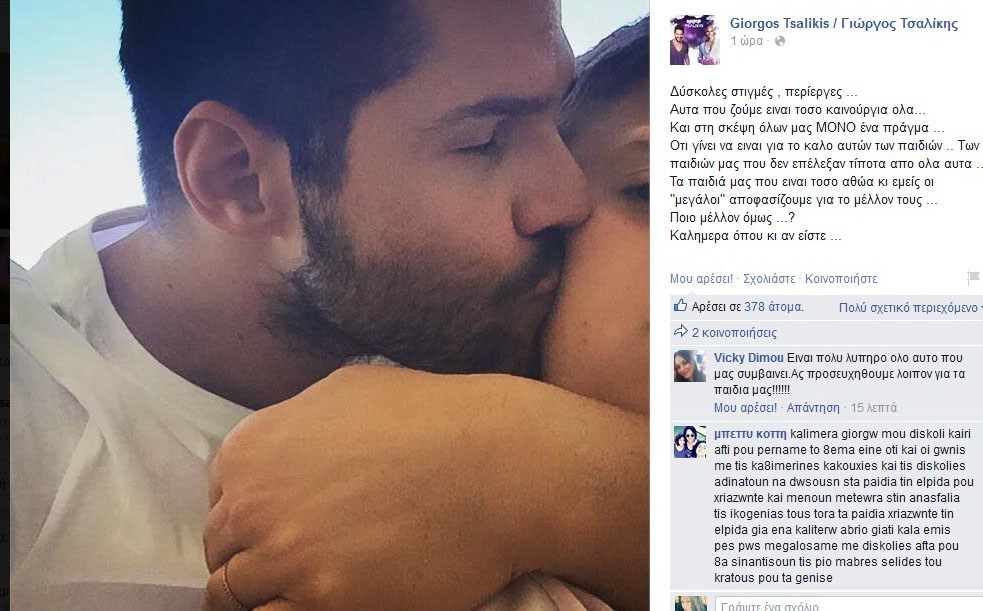 Ο Γιώργος Τσαλίκης δεν έκρυψε τον έντονο προβληματισμό του για τις ραγδαίες πολιτικές εξελίξεις στην Ελλάδα. Μέσω Facebook, μοιράστηκε την αγωνία του για τα παιδιά του και όχι μόνο.