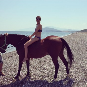 Η Βίκυ Καγιά χαλαρώνει κάνοντας ιππασία και απολαμβάνοντας τον ήλιο. Διαθέτει τέλειες αναλογίες και ένα κορμί ιδανικό που δε φαίνεται να εγκαταλείπει ποτέ.