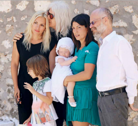 Μαζί ήταν και ο 7χρονος γιος τους Ανδρέας στην Καλαμάτα, όπου η παρουσιάστρια βάπτισε το κοριτσάκι του καλού της φίλου και διαιτολόγου, Γιώργου Λεοντίου. Η μικρή πήρε το όνομα Ιουλία, σε μια λιτή τελετή και δεν έφυγε λεπτό από την αγκαλιά της νονάς της, στην οποία έχει αδυναμία, αλλά όπως φαίνεται της έχει και εκείνη.