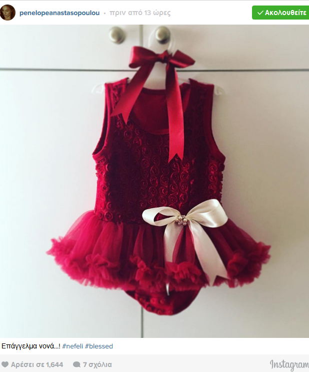 Η εγκυμονούσα νονά επέλεξε για το μικρό βαφτιστήρι της ένα πανέμορφο φορεματάκι σε κόκκινο χρώμα και μας το έδειξε μέσω Instagram, γράφοντας στη λεζάντα της φωτογραφίας: «Επάγγελμα νονά... Ευλογημένη Νεφέλη».