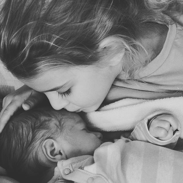 Στη φωτογραφία φαίνεται η μεγάλη κόρη της, Αναστασία, να φιλάει τρυφερά στο μέτωπο τον αδερφό της, σε μια από τις πρώτες φωτογραφίες που έβγαλε το αγοράκι μόλις γεννήθηκε.