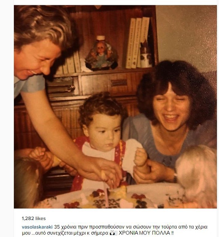 «35 χρόνια πριν προσπαθούσαν να σώσουν την τούρτα από τα χέρια μου...αυτό συνεχίζεται μέχρι κ σήμερα. ΧΡΟΝΙΑ ΜΟΥ ΠΟΛΛΑ !!», σχολίασε στη λεζάντα.