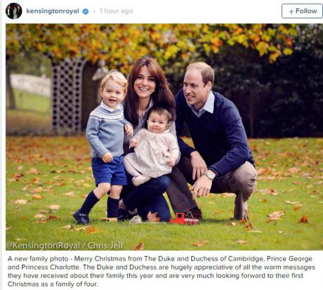 Έχοντας στην αγκαλιά τους τη Charlotte, το πριγκιπικό ζεύγος ποζάρει στο φακό με τον δύο ετών πλέον George να κλέβει τις εντυπώσεις.