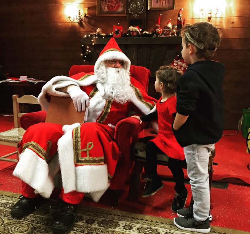 Στη φωτογραφία τα παιδιά στέκονται μπροστά στον Άγιο Βασίλη και του ζητούν τα δώρα τους, στη διάρκεια χριστουγεννιάτικης βόλτας τους με τη μαμά τους, όσο ο μπαμπάς τους έκανε τις τελικές πρόβες για την αποψινή πρεμιέρα του στο «Estate».