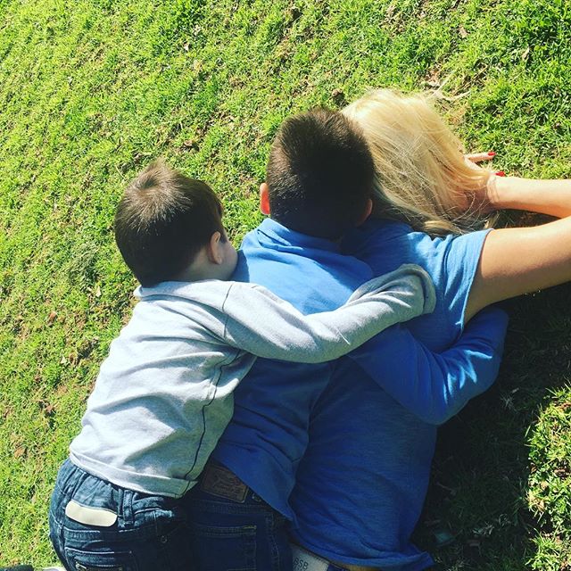 Η μαμά Φαίη ξάπλωσε στο γρασίδι για να απολαύσει τον ήλιο και πάνω της ξάπλωσαν τα αγόρια της, όπου έπαιζαν μαζί της, ενώ ο μπαμπάς Γιώργος Λιάγκας απαθανάτιζε τη στιγμή..