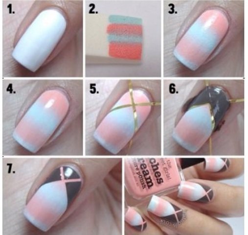 Ακόμη μία πρόταση για την οποία θα πρέπει να ξεκινήσεις με ombre, είναι και αυτή εδώ. Τα χρώματα που πρέπει να χρησιμοποιήσεις είναι λευκό, ανοιχτό γαλάζιο και πιο σκούρο γαλάζιο.
