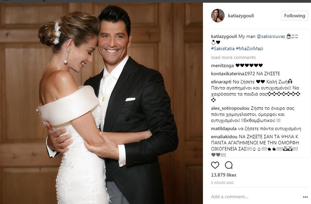 Η Κάτια δημοσίευσε μία και μοναδική φωτογραφία με τον άντρα της ζωής της μετά τον γάμο τους, γράφοντας στη λεζάντα: «My man @sakisrouvas #SakisKatia #MiaZoiMazi».