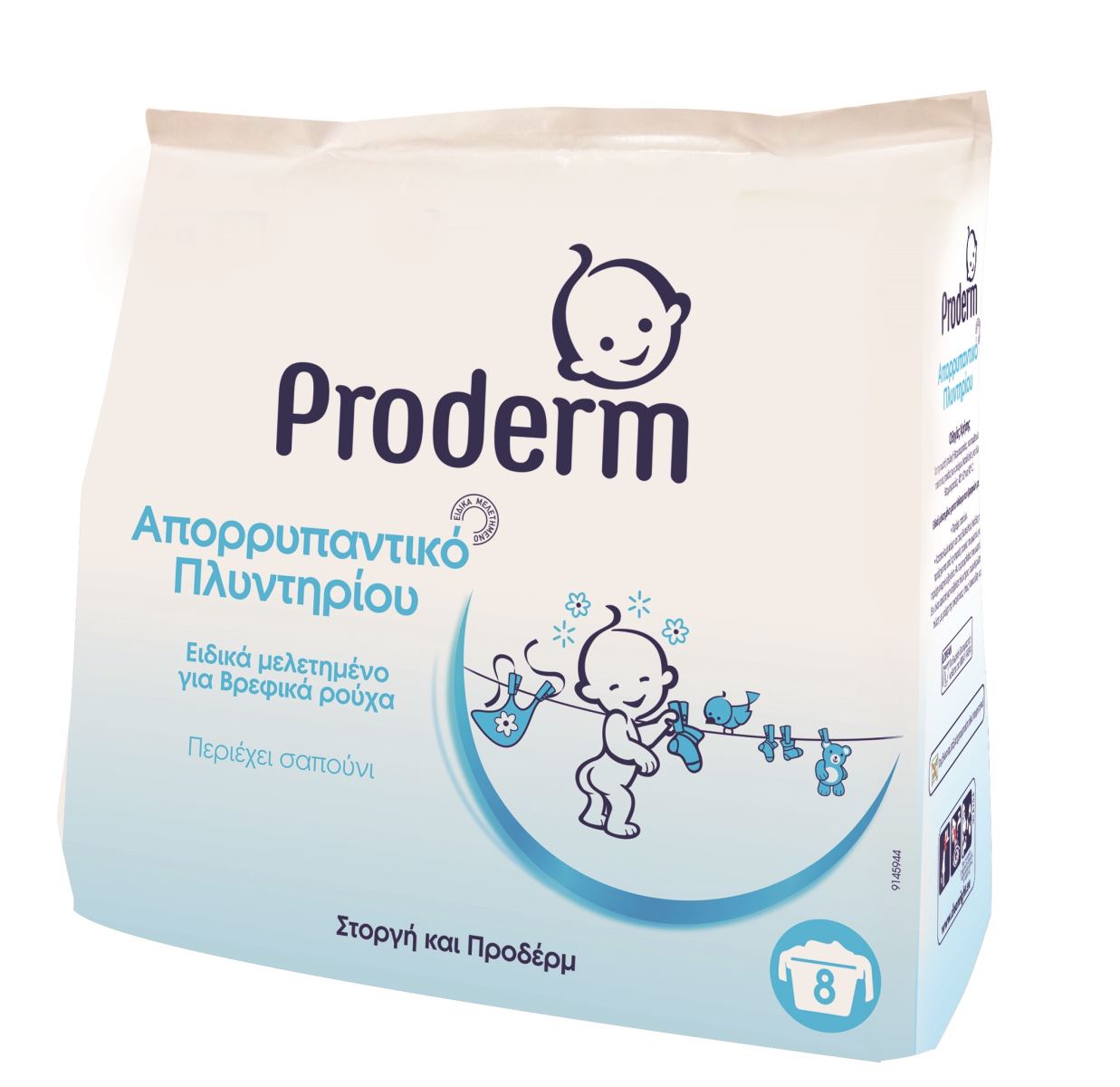 Από εκεί και πέρα, υπάρχει και το υγρό απορρυπαντικό της Proderm, το οποίο είναι κατάλληλο τόσο για το πλυντήριο όσο και για πλύσιμο στο χέρι. Και βέβαια δίνει στα ρούχα του μωρού σας το απαλό άρωμα της Proderm! Αν σε αυτό προσθέσουμε και το υγρό μαλακτικό της Proderm για τα βρεφικά ρούχα που χρειάζονται ιδιαίτερη φροντίδα, είναι σαφές ότι το πλύσιμο των ρούχων γίνεται απλή υπόθεση στο εξής.