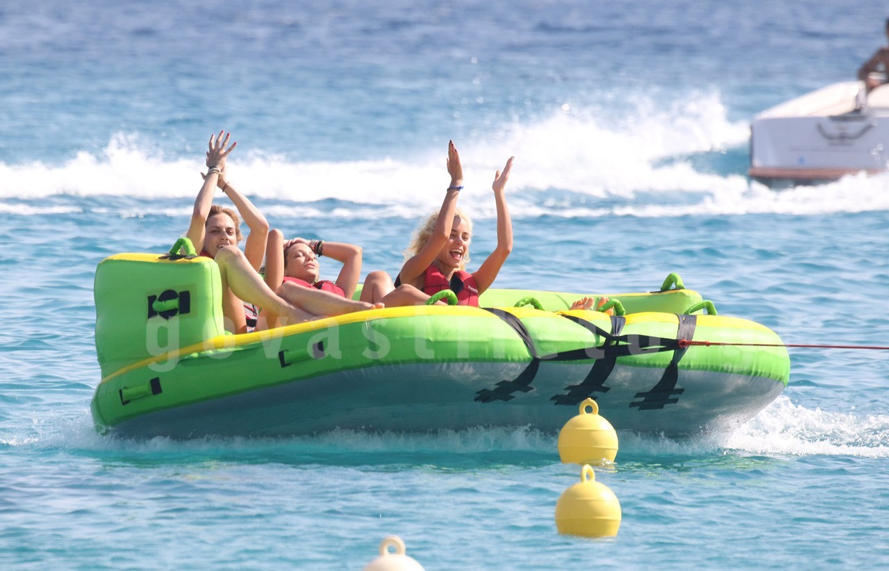 Στη Μύκονο την ώρα που απολάμβαναν παιχνίδια στο νερό απαθανάτισε ο φωτογραφικός φακός του govastileto.gr τη Δούκισσα Νομικού και τη Ντορέττα Παπαδημητρίου.