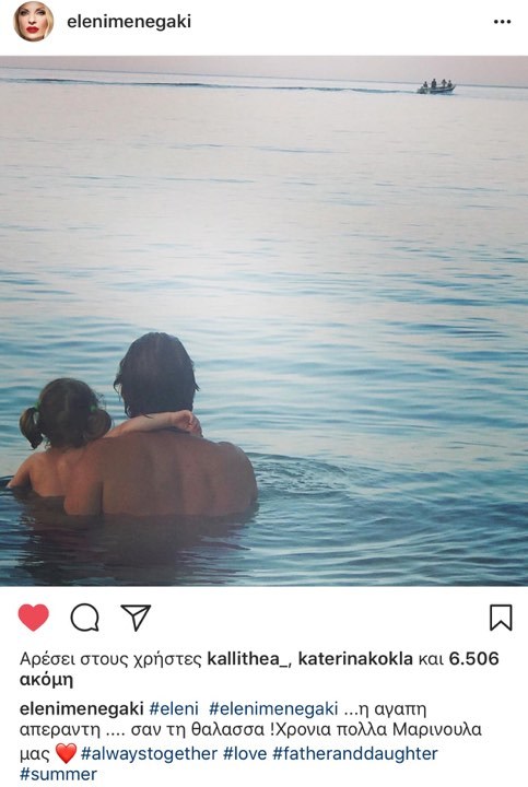 Η Ελένη δημοσίευσε μία φωτογραφία με τη μικρή Μαρίνα αγκαλιά με τον μπαμπά της κι έγραψε στη λεζάντα: «Η αγάπη απέραντη σαν την θάλασσα... Χρόνια πολλά Μαρινούλα μας».