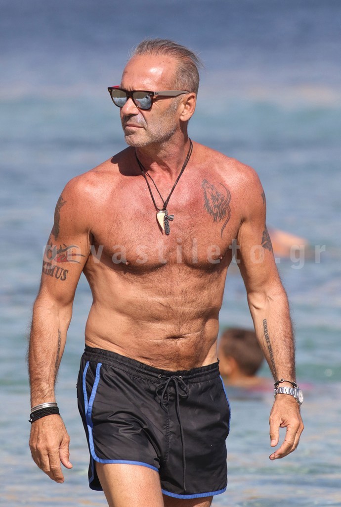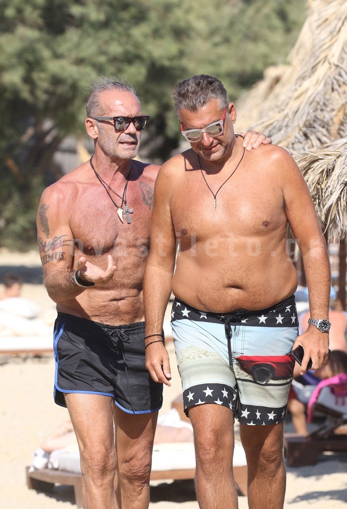 Αυτή τη φορά ο φωτογραφικός φακός του govastileto.gr απαθανάτισε τους δύο άντρες να απολαμβάνουν τον ήλιο και τη θάλασσα σε κοσμική παραλία του νησιού.