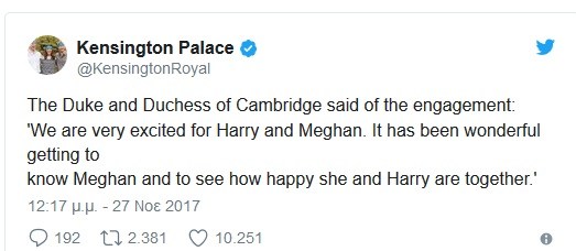 Ο αδελφός του William έσπευσε και αυτός να καλωσορίσει την ανακοίνωση.