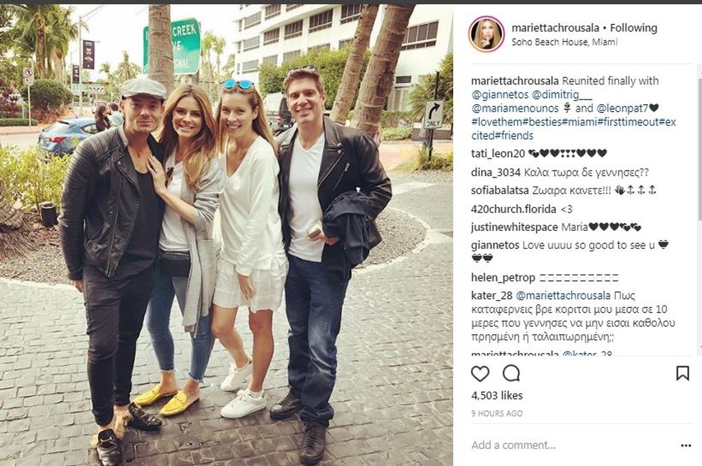 Η Μαριέττα Χρουσαλά και ο σύζυγός της Λέοντας Πατίτσας απήλαυσαν τη βόλτα τους στο Μαϊάμι όπου και συναντήθηκαν με τους κουμπάρους και φίλους τους, Μαρία Μενούνος και Δημήτρη Γιαννέτο.