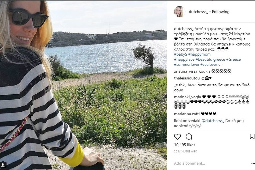 «Αυτή τη φωτογραφία την τράβηξε η μανούλα μου... στις 24 Μαρτίου. Την επόμενη φορά που θα ξαναπάμε βόλτα στη θάλασσα θα υπάρχει και κάποιος άλλος στην παρέα μας!».