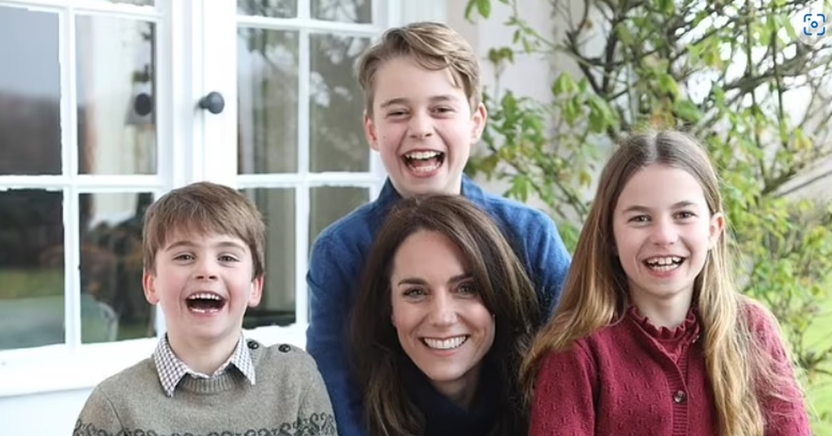 Η 42χρονη πριγκίπισσα Κέιτ φαίνεται να λάμπει στην φωτογραφία μαζί με τα τρία της παιδιά, τον πρίγκιπα Τζορτζ, τον πρίγκιπα Λούις και την πριγκίπισσα Σάρλοτ, σε μια φωτογραφία που τράβηξε ο σύζυγός της, πρίγκιπας Γουίλιαμ.