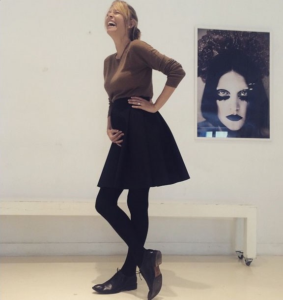 «So happy to style almost in my 7th month, wearing my favorite skirt,cashmere sweeter and brogue», έγραψε χαρακτηριστικά.