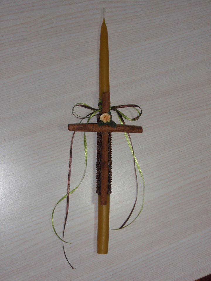 Μια ακόμα ωραία ιδέα είναι ναι φτιάξετε λαμπάδες για τον επιτάφιο. Το μόνο που θα χρειαστείτε είναι ένα καφέ κερί και λίγα λιτά διακοσμητικά, όπως ένα απλό λουλουδάκι, μια κορδέλα ή ένας σταυρός από ξύλο κανέλας.