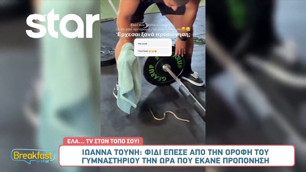 Η Ιωάννα Τούνη τρόμαξε όταν είδε φίδι στο γυμναστήριο.