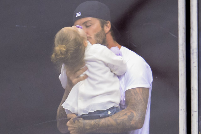 Η οικογένεια Beckham παρακολούθησε σύσσωμη το προηγούμενο Σάββατο έναν αγώνα χόκεϊ στο Los Angeles και ο David δεν σταμάτησε να κρατά στην αγκαλιά του και να δίνει φιλιά στη δύο ετών κορούλα του Harper!