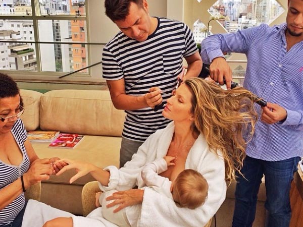Η Βραζιλιάνα καλλονή Gisele Bundchen ανέβασε στην προσωπική της σελίδα στο facebook μια φωτογραφια, που την δείχνει να θηλάζει, ενώ ετοιμάζεται για φωτογράφηση.